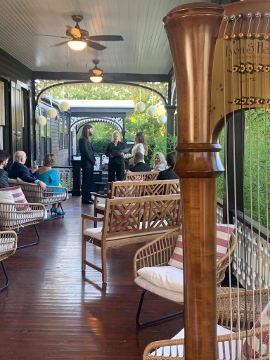 Outdoors Weddings Have you wondered what type of music will be used for your outdoor ceremony or cocktail hour? Well, there is no need to worry, the harp is an elegant choice for your next outdoor event. Lucia prefers to use a pedal harp for outdoor events. This type of harp is able to meet the acoustic challenges presented by outdoor weddings. Wireless amplification is available for larger crowds. Amplification is also available for the officiant. Lucia has performed outdoor weddings on the Beach as well as popular New Jersey Caterers. |